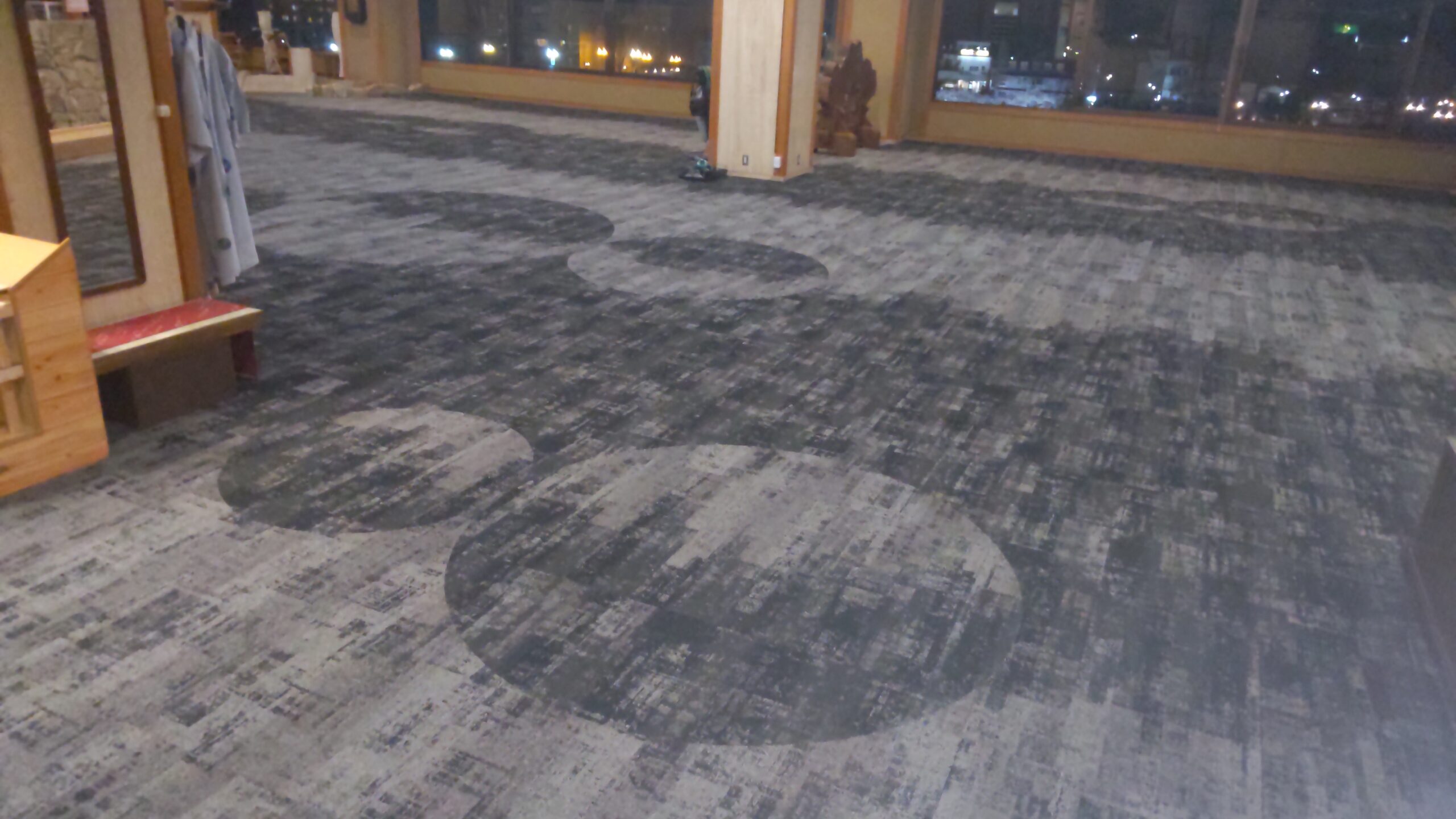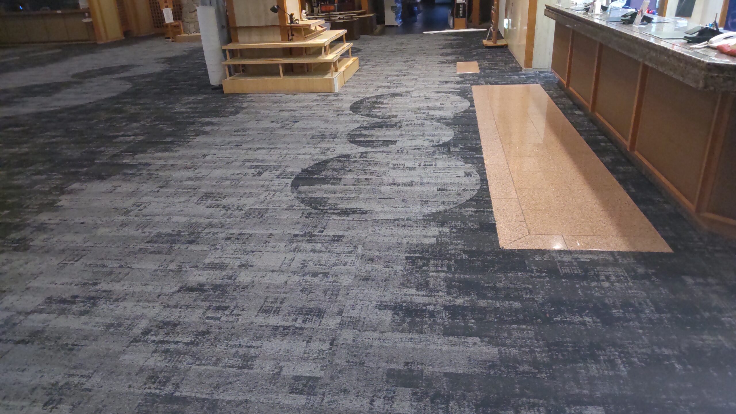 長年使用されたカーペットの老朽化ですり減り等が目立ってきたため、張り替え。 東リ様のタイルカーペットを、コーディネーターの方に、家具も含めトータルデザインしていただき貼り替えしました。 お客様はもとより、従業員の方々からも、好評を得ております。